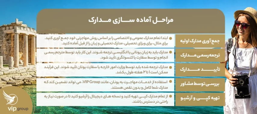 مشاوره حرفه ای: استفاده از خدمات مهاجرت به یونان، مانند آنچه VIP Group ارائه می دهد، می تواند فرآیندهای پیچیده را ساده تر کند. این شرکت با تجربه درخشان خود، از جمع آوری مدارک تا دریافت ویزا همراه شماست.